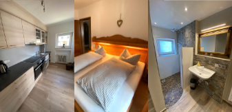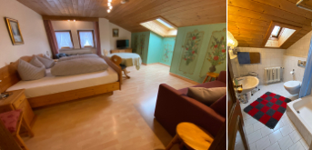Ausstattung der Wohnung: Der Wohnschlafraum ist großzügig und mit einer gemütlichen Sitzecke ausgestattet. Die separate und hochwertige Küche ist mit einer Spülmaschine, ausreichend Geschirr und Zubehör eingerichtet. Die Wohnung verfügt über einen sehr schönen und bestuhlten Südbalkon mit Blick auf das Wettersteingebirge. DU/WC. [Grundriss Wohnung Waxenstein]