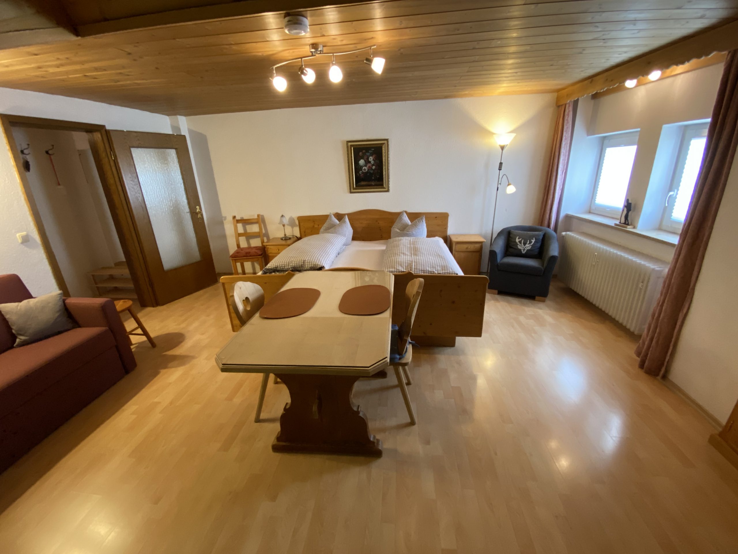 Ausstattung der Wohnung: Die Wohnung hat einen großzügigen Wohnschlafraum und ist komfortabel mit einer zusätzlichen Schlafcouch eingerichtet. Die separate Küche ist mit ausreichend Geschirr und Zubehör ausgestattet. DU/WC. [Grundriss Wohnung Kramer, Button rechts]