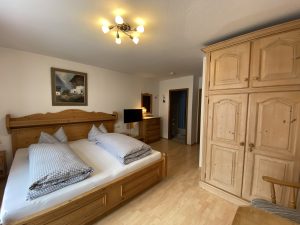 Ausstattung der Wohnung: Die Wohnung ist mit einem sep. Schlafzimmer, Wohnschlafraum, sep. Küche und DU/WC ausgestattet. Das Wohnzimmer ist großzügig, komfortabel und mit einer gemütlichen Essgruppe eingerichtet. Die Küche ist mit ausreichend Geschirr, einer Geschirrspülmaschine sowie Mikrowelle mit Backfunktion und Zubehör versehen. Die Wohnung hat zwei Ost- und einen Südbalkon, die bestuhlt sind. [Grundriss Wohnung Alpspitz | Button rechts]